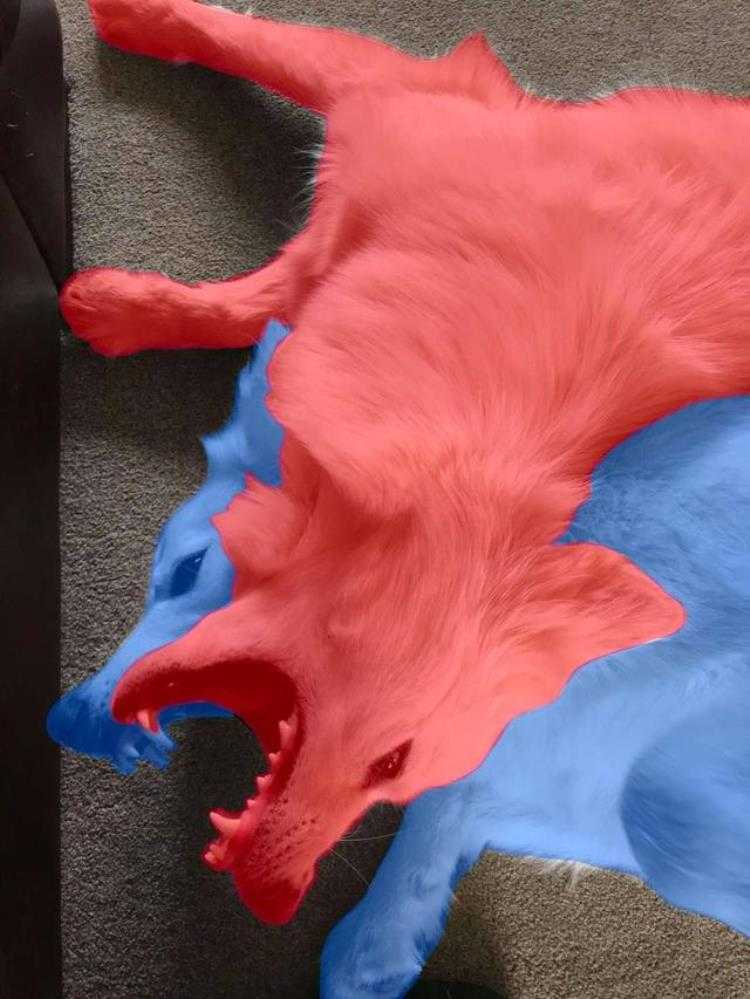 一名网友为了帮大家解惑,还把照片中的凯和史卡拉分别涂上红色和蓝色,证明真的有两只狗狗在照片里,而不是什么双头狗或新品种~