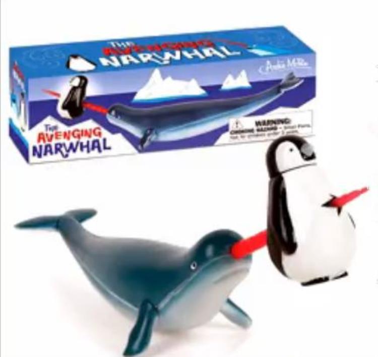 如果你的儿子或者女儿喜欢戳东西,这玩具就是为他们量身定做的,复仇的独角鲸由Archie Mcfhee公司制造。除了独角鲸还有一个可拆卸的尖刺和一个(可穿刺的)企鹅。你还可以买礼盒套装,里面有四个可拆卸的尖刺,其中一个是血红色的,还附带了一只考拉和海豹供你穿刺。[三只可爱的动物供你穿刺]包装盒上就是这么说明的,我完全能感受到这个玩具的魅力,特别是对于家长,要教育孩子大自然的可怕之处,有什么比用一只凶杀动物的独角鲸更好的方法呢?教育和疯狂并存!
