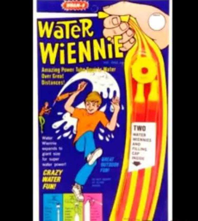 这个东西不需要解释也知道哪有问题对吧,Water Wiennie是20世纪80年代的一个玩具。它就是一个长长厚厚的塑料管,如果释放压力就会从一头喷水,基本上孩子会松开一端的夹子把它装满水再拧紧,然后再通过松开底部的小口向别人射水。有意思的是,80年代的家长毫不在意自己的孩子,拿着一根丁丁似的管子对朋友射水。当时绝对有家长会心想,看起来跟丁丁似的。