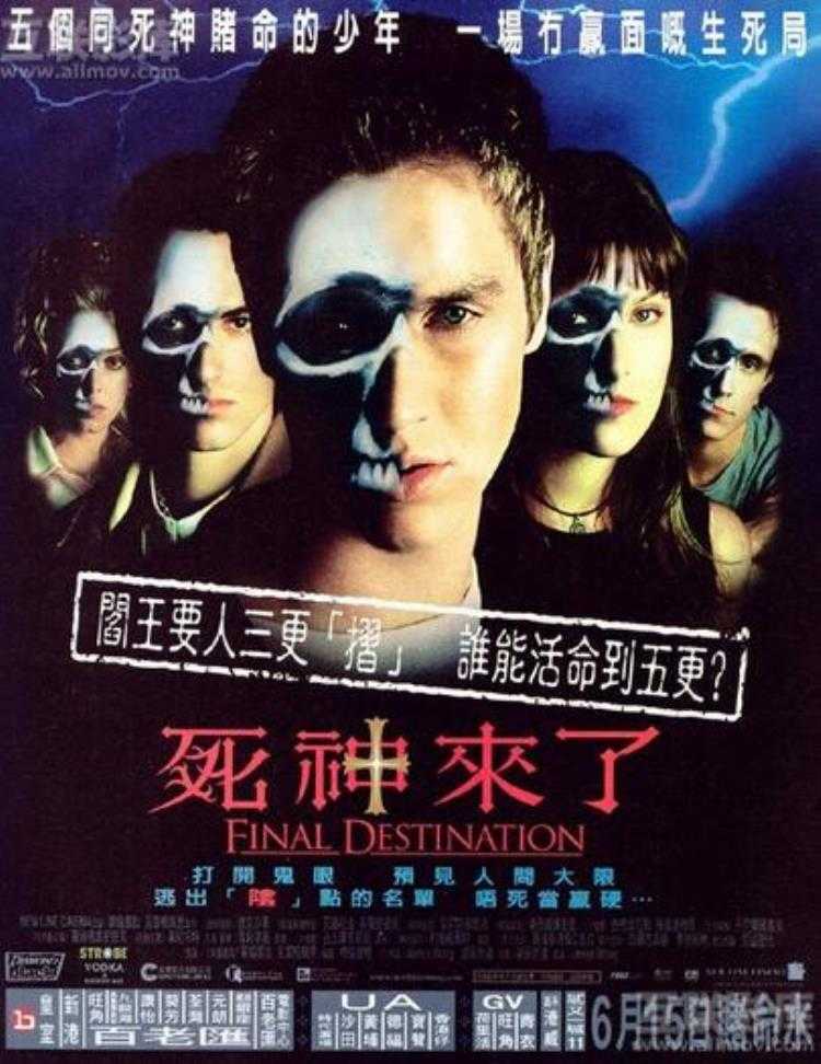 《死神来了》系列是具有较高知名度的系列电影,第一部于2000年上映。故事讲述高中生亚历克斯(戴文·萨瓦饰)预见到人们的死亡,虽然极力阻止,却依然阻挡不了‘死亡定律’的故事。第一部的剧本最初出自杰夫里·伟迪克,原是美国电视剧《X档案》的后备剧本,其后被黄毅瑜改编并以电影形式推出。在第一部死神来了获得良好口碑之后,电影公司又先后推出了《死神来了2》、《死神来了3》和3D版的《死神来了4》,《死神来了5》。