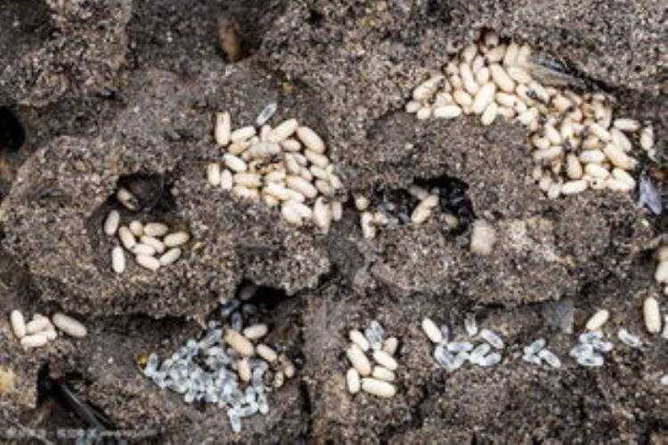 比如在一棵树的树干上,爬满了同一种类的某种昆虫(瓢虫、甲虫、蜘蛛等),它们可能还会互相层叠着,非常拥挤。又比如密密麻麻的昆虫卵等。