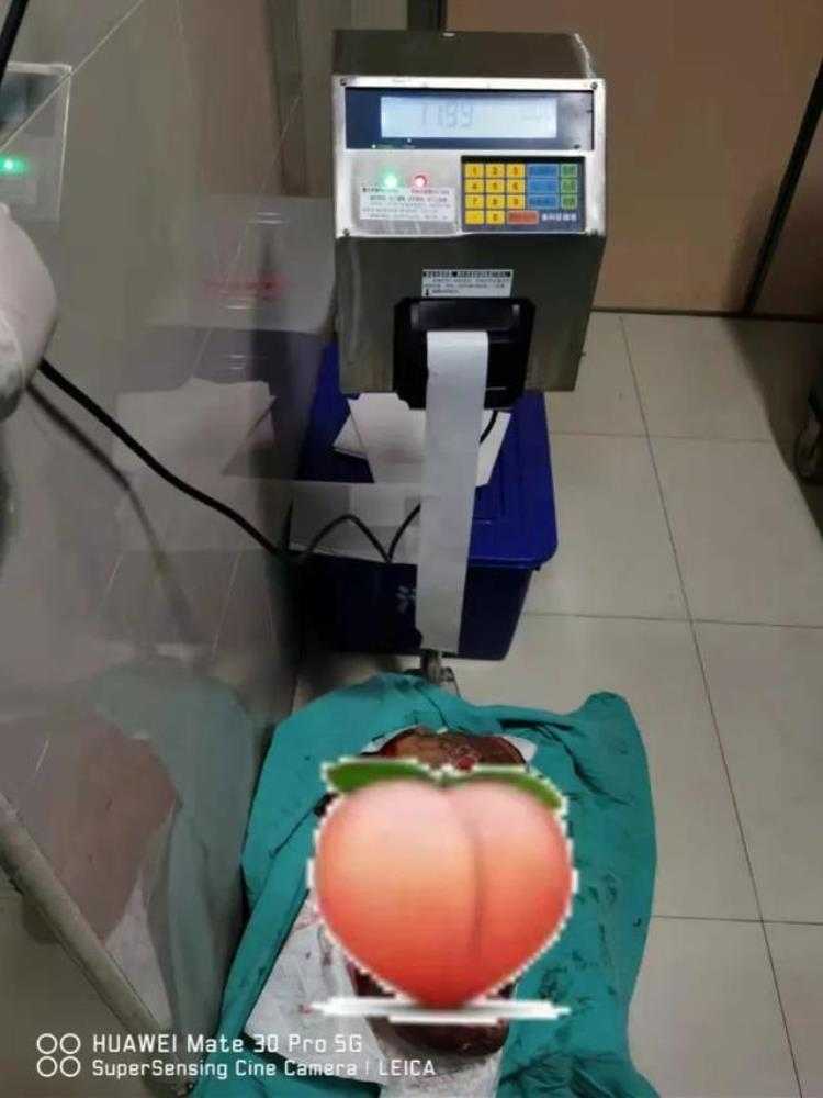 通过测量,该巨大肿块最大直径达到50厘米(0.5米),重为11.99公斤。