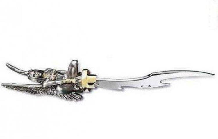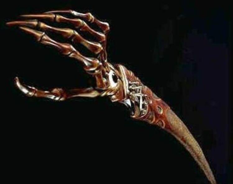 说到世界世界上最恐怖的刀,不禁让我想起了那把我们曾经在世界上最恐怖的刀中提到的那把鬼手刀了,这把刀的所有材料都是用人身体的组织做成的。这把刀的外形正如它的名字一样,是人手的形状。据说这把刀是十四世纪意大利的一个疯铁匠所铸,为了以此刀来还欠债主的钱。这把刀的所使用的材料也很邪恶,所用的都是铁匠家人身上的骨头。他将自己妻子的右手砍下做成刀柄,后又将儿子肋骨磨成刀刃,并把自己的小腿骨做成刀鞘,可以说这把刀占满了铁匠家人的鲜血。这把刀献给债主的3天之后,债主就发疯似的把一家人都给烧死了。后来得到这把刀的人都会发疯,而且家中的人都会惨死。可以说这把刀就是死神的使者。