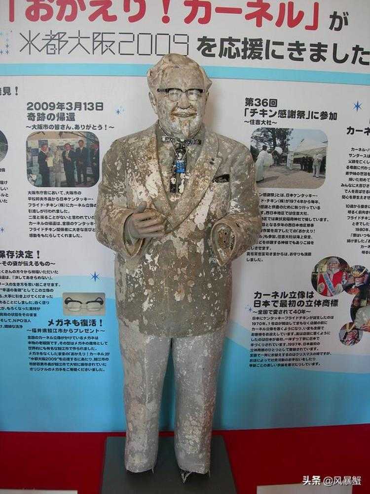 KFC爷爷的诅咒1985年日本阪神虎棒球队得到了日本棒球联赛冠军,球迷聚集在大阪道頓堀橋上玩游戏,每当有球迷叫出球队队员的名字,打扮得像這位球員的人就要跳进河中。但当喊到一位美国籍的球員Randy Bass時,因為球迷中沒有美国人,所以他們把KFC爷爷扔进道頓堀川里,自此球队就沒有拿过冠军,大家都认为这是KFC爷爷的诅咒。