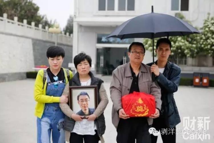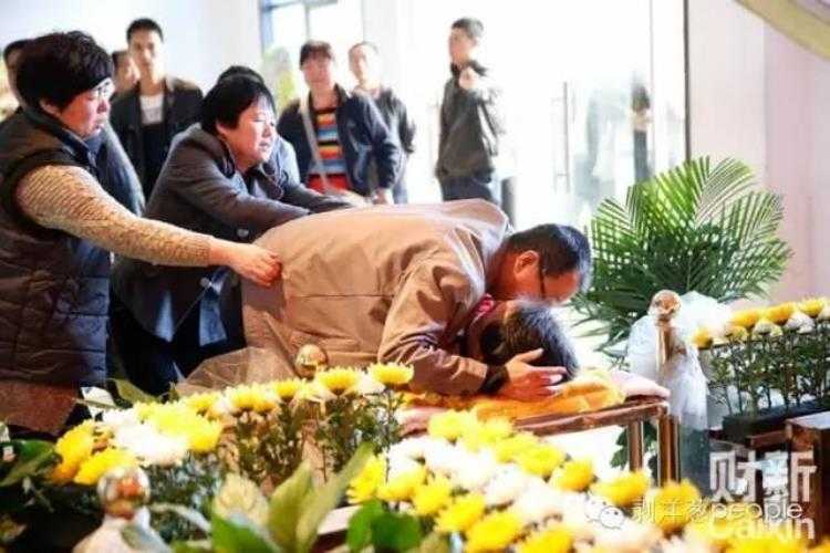 ▲4月13日,陕西咸阳,告别仪式前,魏则西的父亲扑上去抱住儿子。图片来源:财新网