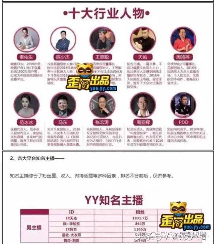 这些大主播们全网拥有过千万粉丝,过千万年收入,去年微博评选中国十大网红,YY主播占据了七位,其中MC天佑更是勇夺中国十大网红之首。
