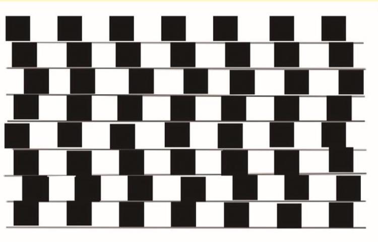 但当你眨眨眼,等双眼失焦 之后,再去看这两条平行线,这时 你又会觉得这两条线并没有弯曲。 大家可以去看一些有关黑林错觉 的图片,相信大家也会被这种神 奇的视觉效应深深吸引。
