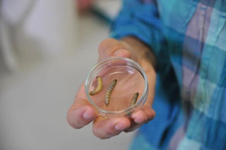 这种名为蜡虫的毛虫是大蜡蛾的幼体,它们对养蜂人来说是一种害虫。大蜡蛾在蜂巢内产卵,孵化出的蜡虫以啃食蜂蜡为生。
