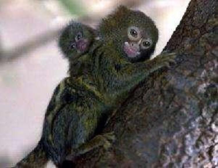 倭狨是猴子王国中的“小矮人”,它的身体只有8--10厘米,体重也只有48-79克。它主要生活在厄瓜多尔、秘鲁北部和巴西西部的热带森林里。在瑞典的“斯坎森”动物园里,有个叫齐斯的人,曾经饲养过两只小小的倭狨,长度只有4.5厘米,相当于人的手指头那么长,非常惹人喜爱。