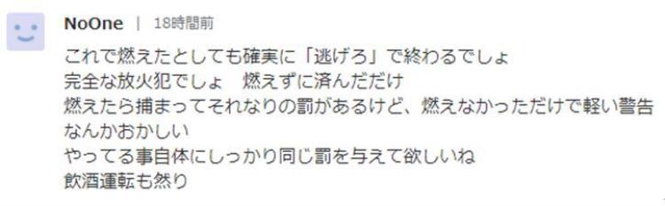 此事经媒体曝光后引发日本网民关注。有日本网友称,“这群人应该以放火罪未遂的罪名遭到逮捕。”
