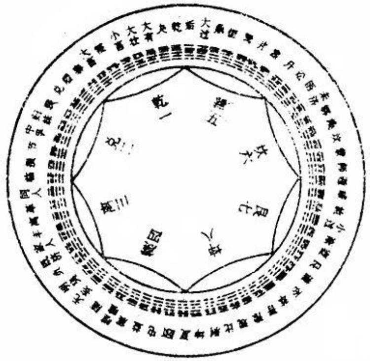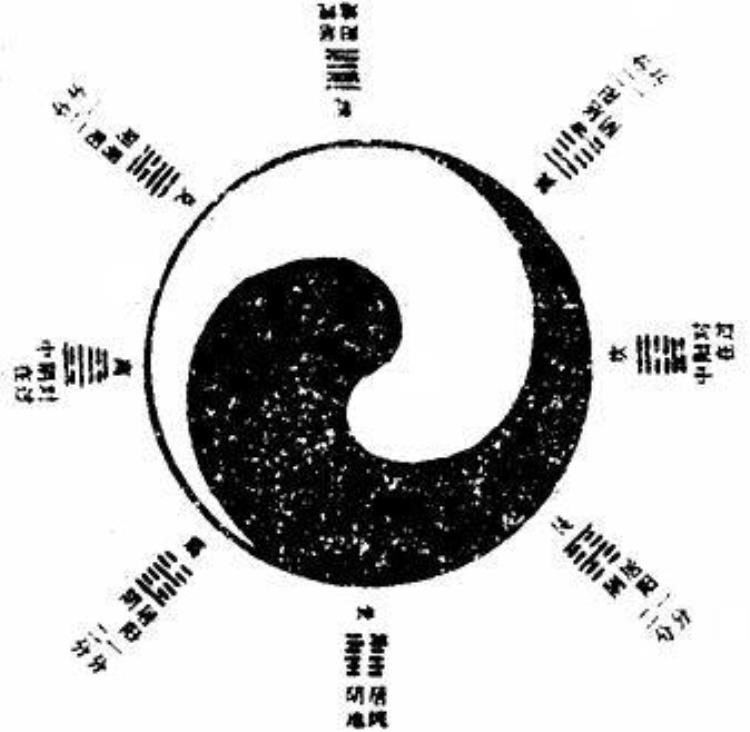 据后人研究,该图有“太极含阴阳,阴阳含八卦之妙”,是对《易·系辞》“易有太极,是生两仪”的阐释,此图式还用以表示阴阳二气消长的过程,以阴阳环抱为太极,以八卦之象表示二气之消长。(11)