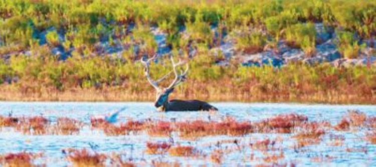 在江苏省东台市条子泥湿地活动的麋鹿。 李东明摄