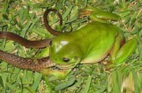 据报道称食蛇蛙最喜欢吃的是响尾蛇,这种蛇可是在毒蛇排行榜上有名的。能够吃响尾蛇,是不是感到非常厉害。当它捕捉响尾蛇时候,主要是因响尾蛇尾巴发出声音来进行追杀,子啊最后靠近时候就会一把咬住蛇头。