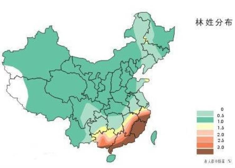 林姓人口密度最高为福州、莆田、闽南、粤东及台湾。
