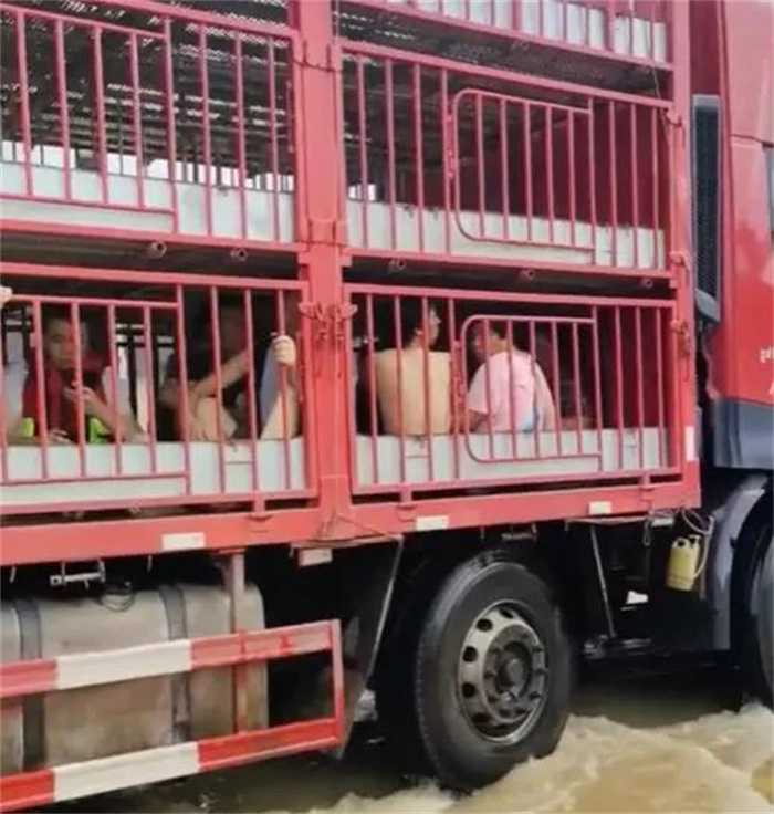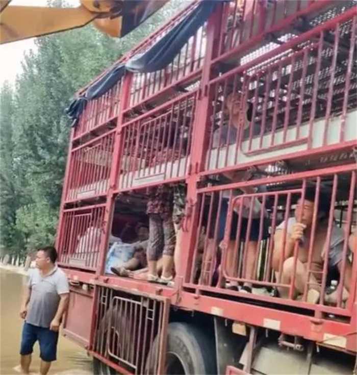 涿州正经历洪灾 拉猪的大货车变成了“诺亚方舟”