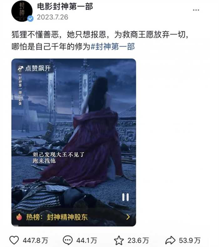 或许是担心观众们仍不吃这套,电影在宣发上更是着重强调了妲己的 " 事业心 "。