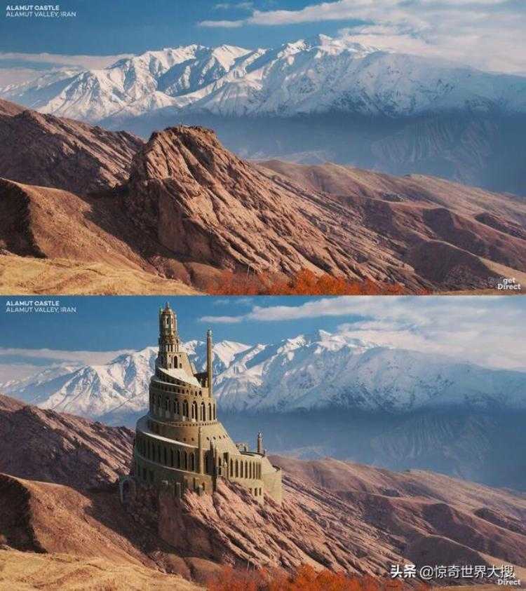 这座城堡位于厄尔布尔士山脉的3000米高峰之上,距离德黑兰约100公里。阿拉穆特在波斯语中意思是“鹰的巢穴”,该城堡最初建于公元9世纪,地势险要,只有一个入口,是一座易守难攻的堡垒。