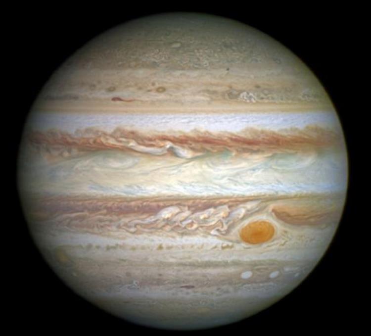 哈伯太空望远镜的WFC3相机于2014年所拍摄到木星的真实色彩影像,可清楚看见木星南半球的大红斑。