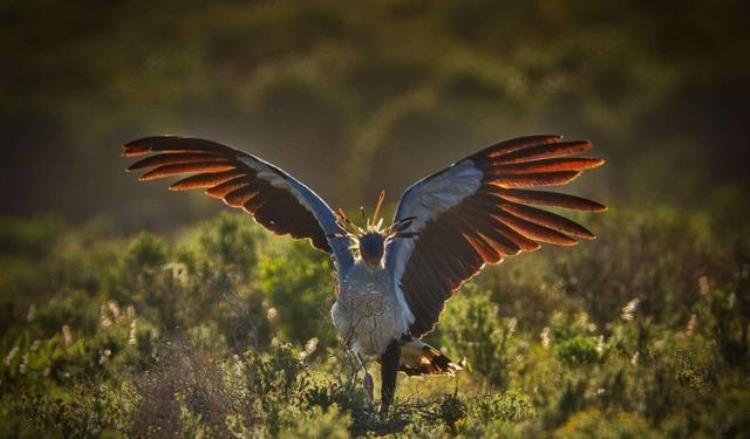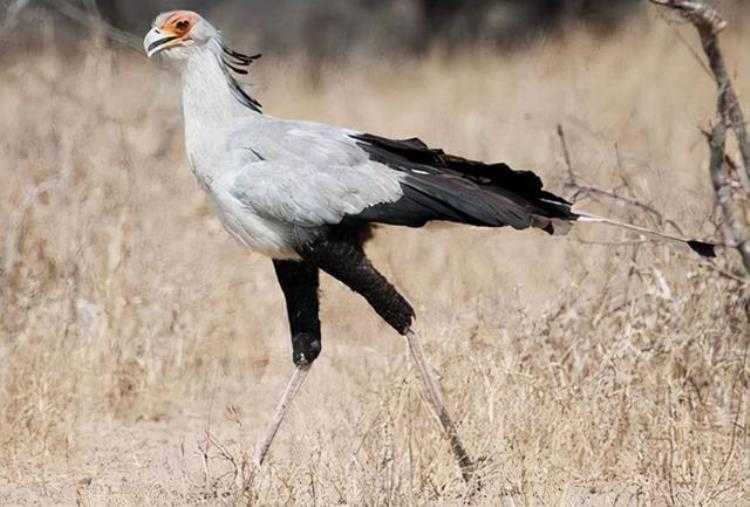 仔细看上半截好像是穿着一条“黑色毛裤”,在所有猛禽中蛇鹫的腿长位居第一,走起路来体态还十分的优雅,裸露的脚爪上覆盖着厚厚角质膜,毒蛇的牙齿咬不透。