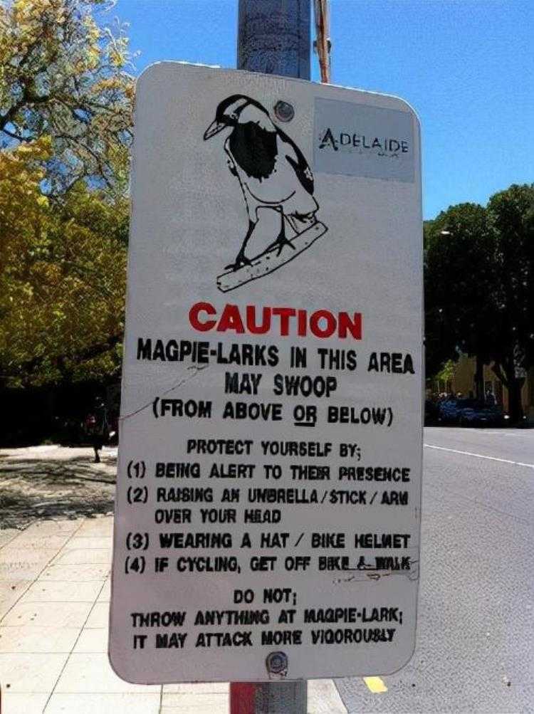 因为只要进入它们的领地,走路会被攻击,骑车会被攻击,那个时候你才知道为什么澳洲政府规定骑车不带头盔要罚款,因为头盔真的是在保护你的生命,最惨的可能是挨家挨户送快递的大爷了吧。