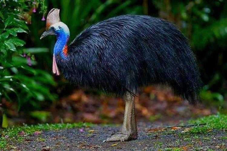 虽说俗名叫食火鸡,但它跟鸡真的一点关系都没有,食火鸡学名鹤鸵,属于古颚总目,也就是和鸵鸟是一家子的。当然和它们的亲戚一样,食火鸡老家就在澳洲,大家是不是也觉得澳洲真的啥妖魔鬼怪都有,论个头食火鸡全球排第三,在鸵鸟和鸸鹋之后。