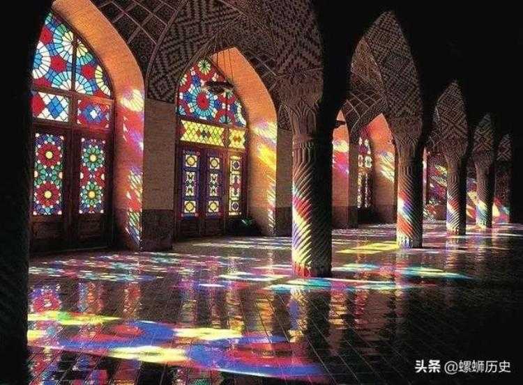 1888年,耗时十二年的莫克清真寺在设拉子落成,至今已有130余年的历史。莫克清真寺的立面大量采用彩色玻璃,室内则大量采用粉红色的瓷砖,因而俗称为粉红清真寺。当清晨的阳光照在莫克清真寺的玻璃上,寺内墙壁和覆盖着波斯地毯的地板上会呈现出五彩斑斓的美,摄人心魄。人在其中,随着斑驳光影的移动,感受千年时光缓慢流淌而过,这或许就是历史与文明的魅力。