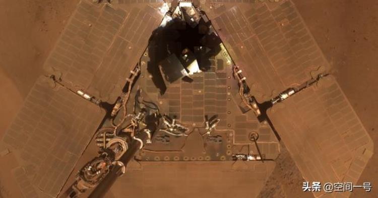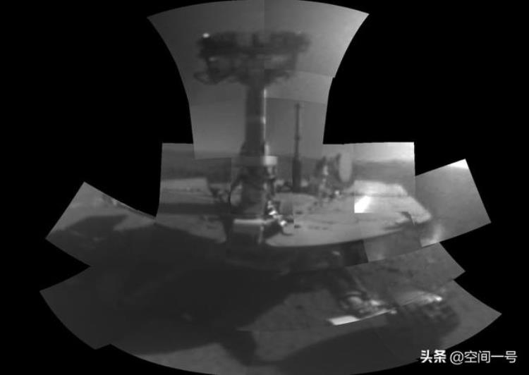 2003年7月7日,崭新的机遇号从地球出发,经过6个多月的漫长星际旅行,终于在2004年1月25日,成功降落在火星子午线高原上。这是机遇号到达火星上的第一张自拍,它用了身上的全景相机,给自己拍了一张工作照,仿佛是告诉大家,我到了,一切平安。