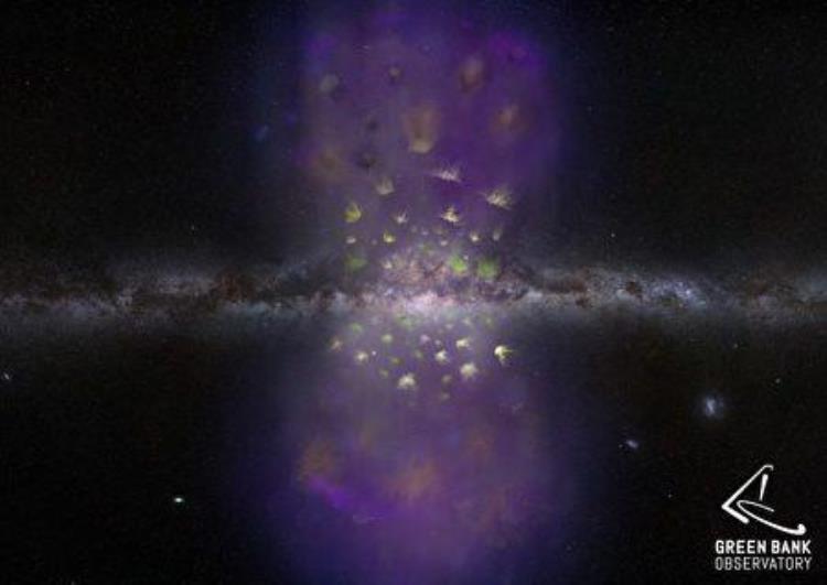 美国国家科学基金会的绿堤射电望远镜(Green Bank Telescope)发现,成群结队的氢气泡从银河系中心飞出,时速为100万公里。