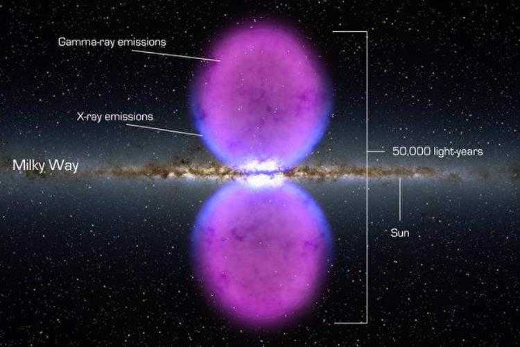 又称“费米泡”,为2010年发现的两个巨大高能量射线泡,其中三分之二成分是伽玛射线,这些射线的发射速度达到每小时320万公里。