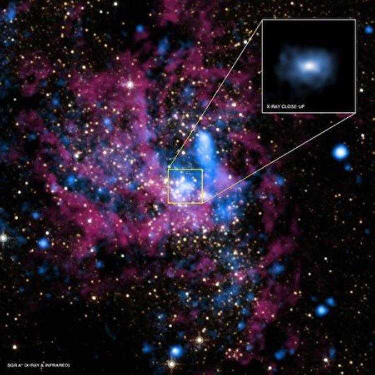 钱德拉X射线天文台(Chandra X-ray Observatory)拍摄的银河系中心巨大黑洞部位发出的X射线图像。(NASA)