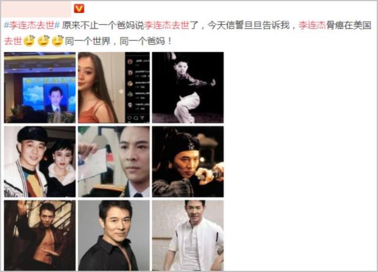 但是,有关李连杰的一些流言却仍旧发酵传播,甚至外网也有不少关于他的不实传言,因为李连杰曾征战好莱坞获得认可,因此他和成龙一样都是国际级别的明星,由此他的新闻也自然会获得外网关注。日前,外网竟然有媒体报道“李连杰去世”的假消息,让人万分诧异。