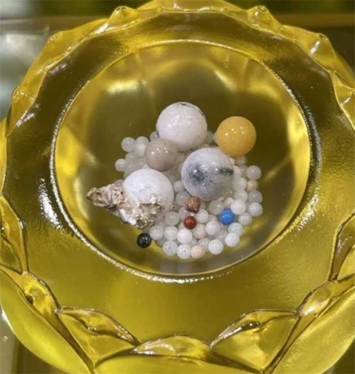 不过没想到,7日后荼毗却意外烧出了一盆颜色各异的舍利子,甚至有部分消息称数量高达25颗!确实,从其弟子们晒出的图片来看还有很多似米粒的小舍利,大部分乳白色,还有的则是红色、红色、蓝色、黑色等琉璃光色的圆形结晶。