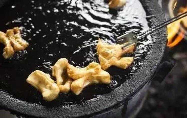 聊到秦桧等人陷害岳飞时,俩人越说越来气,其中有个人便从面板上揉了两块面团,捏成秦桧夫妇模样,另外一人把锅里烧得滚烫的油,俩人把面板上的俩面团扔进去,于是“油炸桧”就出现了,这就是油条最初的原型,经过后人的不断改造,油条就变成了现在我们看到的样子。