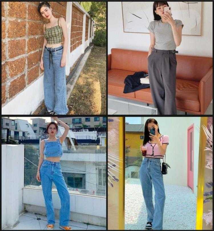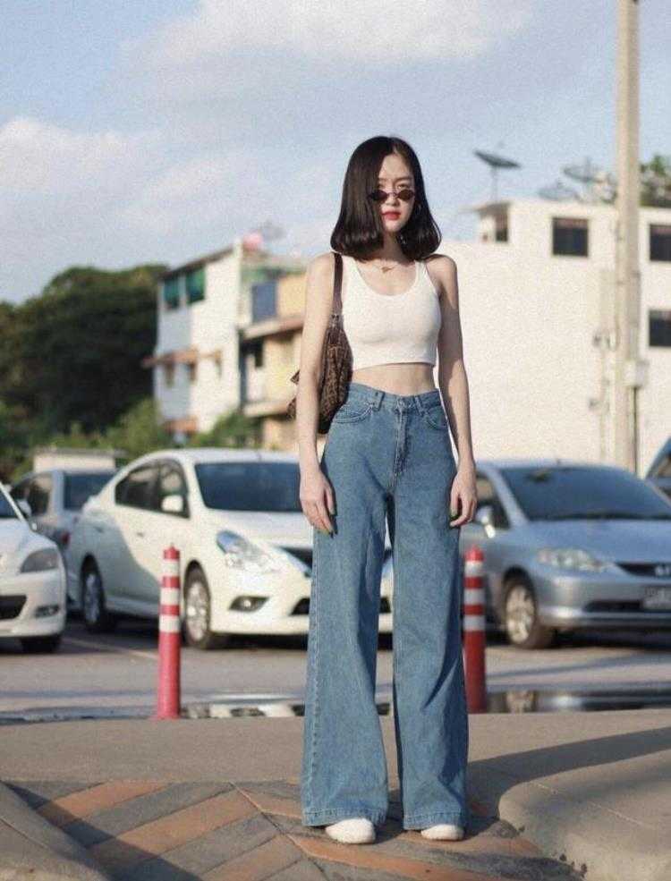 下半身随便搭配一条拖地牛仔裤/A字长裙,上窄下宽,呈现出正三角形身材。