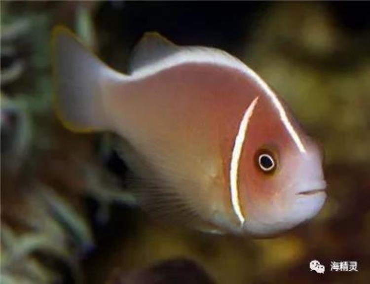 咖啡小丑鱼品种也是小丑鱼的一种,它的身体为桃红色,头部后面有一条白色的斑纹,背部也有一条白色斑纹从嘴部延伸到尾部,也叫做粉红小丑鱼。咖啡小丑鱼因为对于同类具有一定的攻击性,因此是不能够鱼比较凶猛的鱼一起混养。