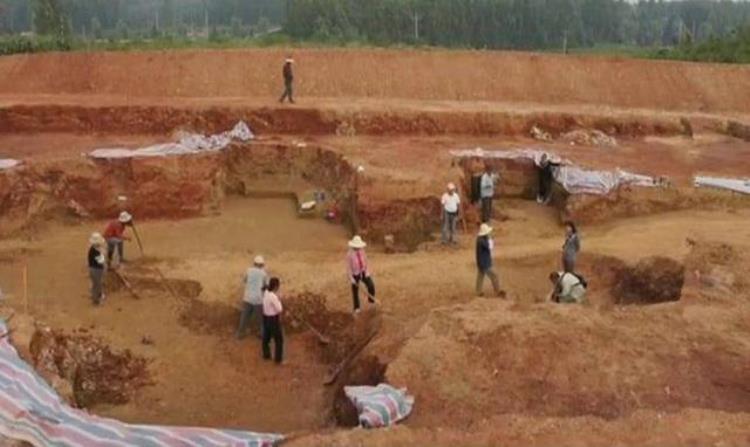 考古人员用洛阳铲对土层进行取样,洛阳铲取上来的是一些熟土,很明显,人类曾经在这里活动过,地下肯定是有墓葬。