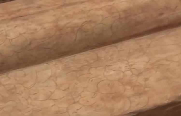 在棺床的底部一层,只用墨线勾勒出祥云和牡丹的图案,而没有雕刻,就像是还没有完工一样。