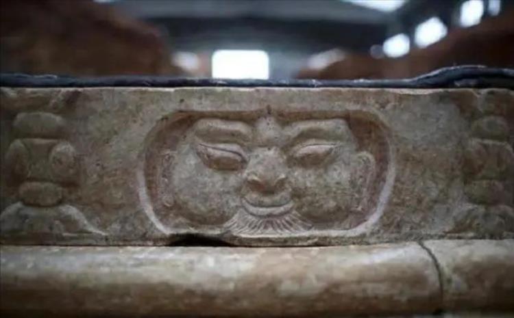 这具棺床一共分为6层,一层刻有一些像金刚的面部的形象,一层刻有瑞兽的图案。