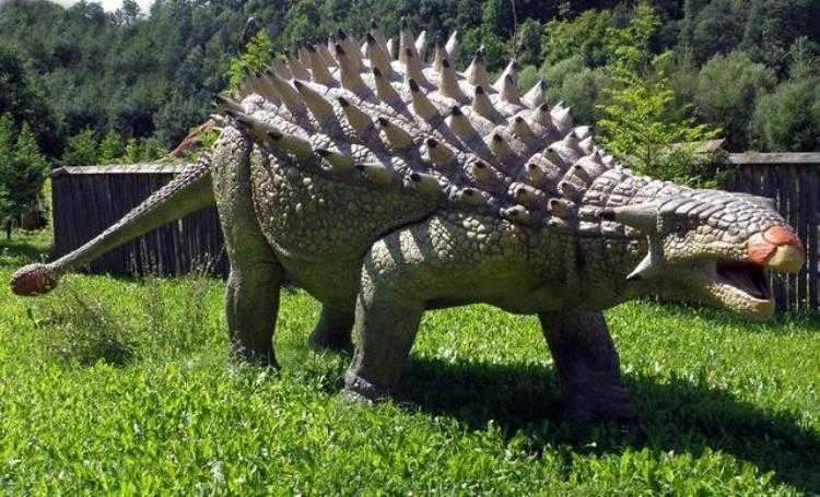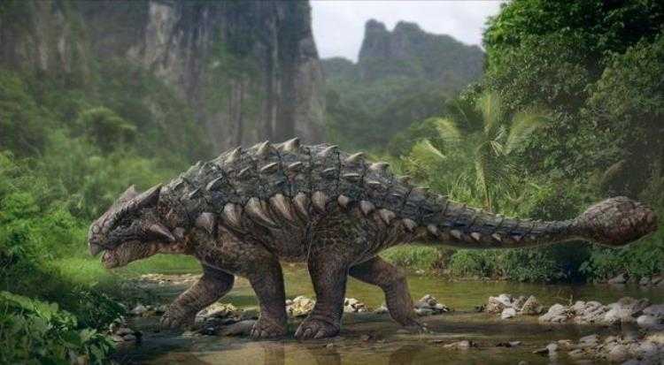 2、甲龙让我们来见识一下有史以来全副武装的恐龙…这种史前坦克最突出和最致命的特征是尾部的大头棒。研究表明,这条尾巴可以在100度范围内移动。它有足够的空间发动有力的一击,足以有效地压碎一头成年霸王龙的腓骨。但是,甲龙摆动的垂直范围可能被限制在一定高度上。除了一根骨棒外,甲龙的上半身还覆盖着一层厚厚的兽皮和骨皮。这种复杂的护甲甚至可以保护它的眼皮!