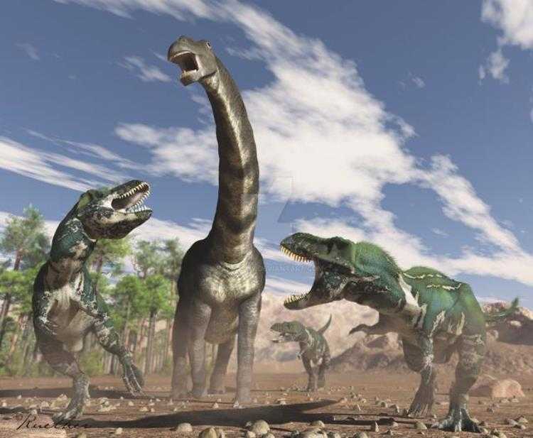 说到这里,一头单独的霸王龙要击败任何体型相似的蜥脚类恐龙是极其困难的,这使得这一群恐龙可能有能力杀死一只成年的霸王龙。霸王龙真的会独自对付这么大的蜥脚类动物吗?可能不会!霸王龙很可能足够聪明,不会让自己陷入自杀的境地。