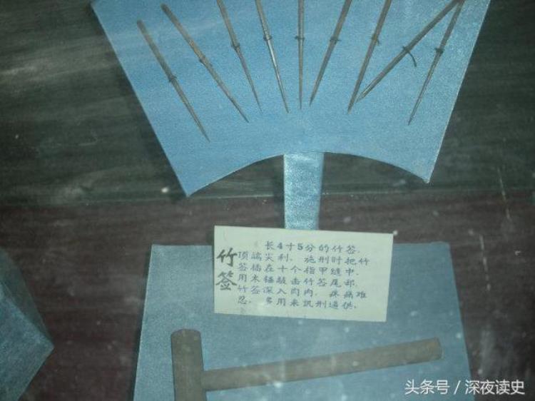 竹签,顶端尖尖的,用于将其插入犯人的指甲缝中,使人痛苦异常。而现如今,竹签大多用于撸串了。