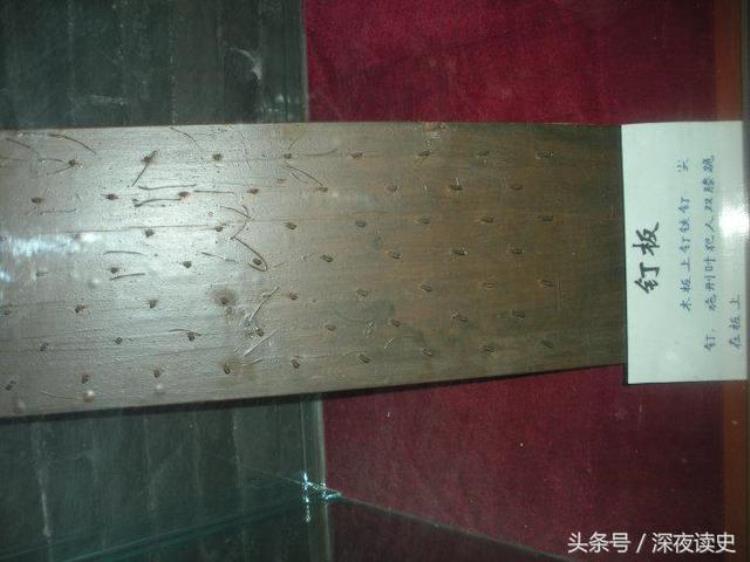 跪钉板,也叫做“滚钉板”,犯人要跪在钉满钉子的板子上,痛苦自不用说。在影视剧《杨乃武与小白菜》中,杨乃武就曾经遭受这样的刑罚。