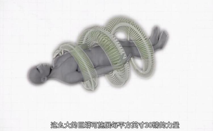 一般情况下,体型超过3米的巨蟒就有吞食人类的能力,体型超过5米的蟒蛇缠绕着人类时,相当于6、7个人站在你的胸腔上,胸腔骨骼都可能会被蟒蛇压扁、压碎。