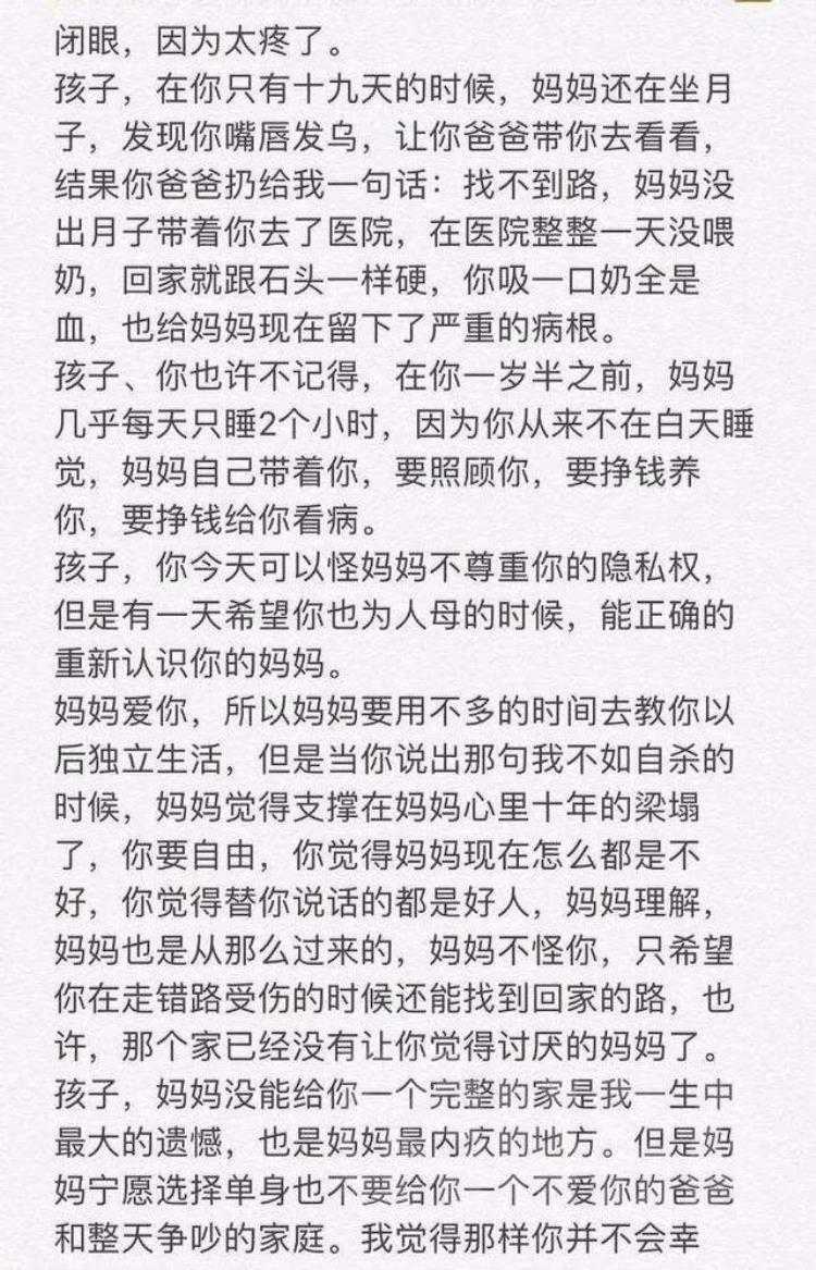 我不否认我教育孩子是有一定问题,缺乏沟通,可能也没有很多的时间去陪她。因为我面临着单亲妈妈所有的困境,那就是经济方面的窘迫。所以我也在反思自己,以后也会努力抽时间来陪孩子。
