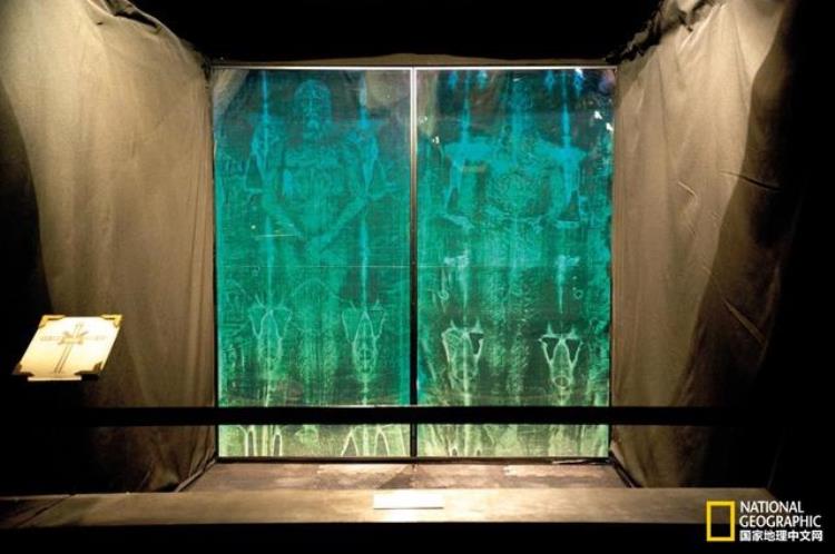 图中的影像是都灵博物馆的同尺寸复制品经过摄影手法强化后得到的。实际的影像要模糊的多,像幽灵一样。