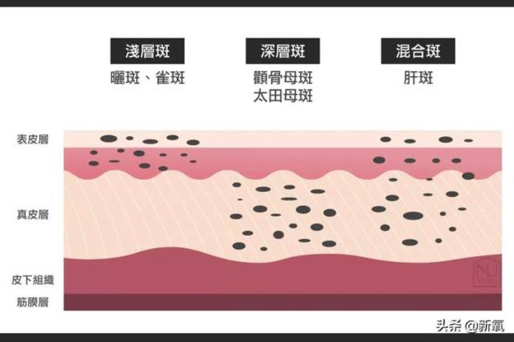 虽然斑点的特征不同,但是形成原因大多都是色素沉着,并根据所处皮层分为浅层斑和深层斑。