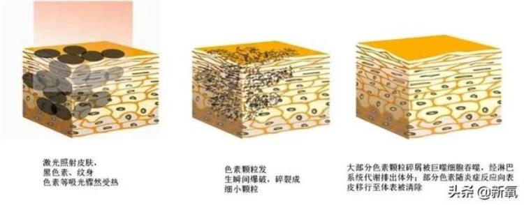 通过激光,浅层斑会在术后随结痂脱落,深层斑则利用光致爆破原理,吸收能量受热爆破,被人体吸收再随淋巴系统排出。