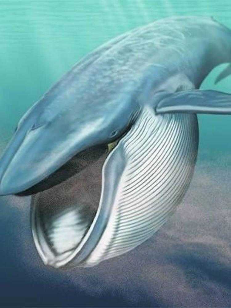 蓝鲸的一条舌头就有两吨,肝脏有一吨,血液总量超过八吨,肠子总长度有数百米,就连雄性的小弟弟都有三米长。一头成年蓝鲸能长到非洲象体重的30倍左右。