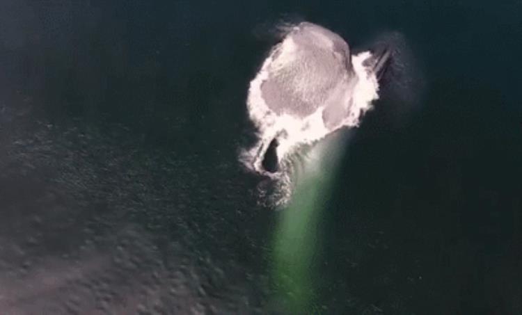 但是这么大的动物,平常吃的食物却是非常小的鳞虾。蓝鲸没有牙齿,嘴里都是一条条的鲸须,它们吞下海水,用鲸须过滤掉食物后吞下,再把海水吐出来。