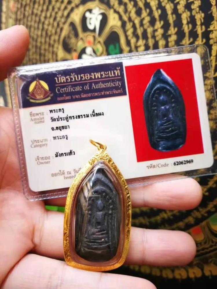 由于他是一位虔诚的佛教徒,希望带同那尊佛像前去灾区,好让他能早晚诵经祈福,同时藉着佛像,希望能保佑灾区,但可惜佛像太大,未能一同带往。当晚,高官做了一个奇怪的梦,梦见佛像叫他可用寺庙的泥土,按他的模样制作一个牌佩戴在身上,一同前去灾区,这样便能得到他的保护,使他平安、顺利,他醒后便按梦中指示制作牌佩戴身上。到了灾区后,他依然每晚诵经祈福,不久,灾区的情况便好转起来。及后,高官因年事已高,便向泰皇告老还乡,并将身上佩戴的佛牌奉献给泰皇,希望此佛牌能带给全国国泰民安。其后,高官在乡间寺庙里当上僧侣修行,在修行期间,还制作佛牌,给善信奉请,希望他们也能得到佛祖的庇佑,带来好运,至此,佛牌便在民间流传开去。